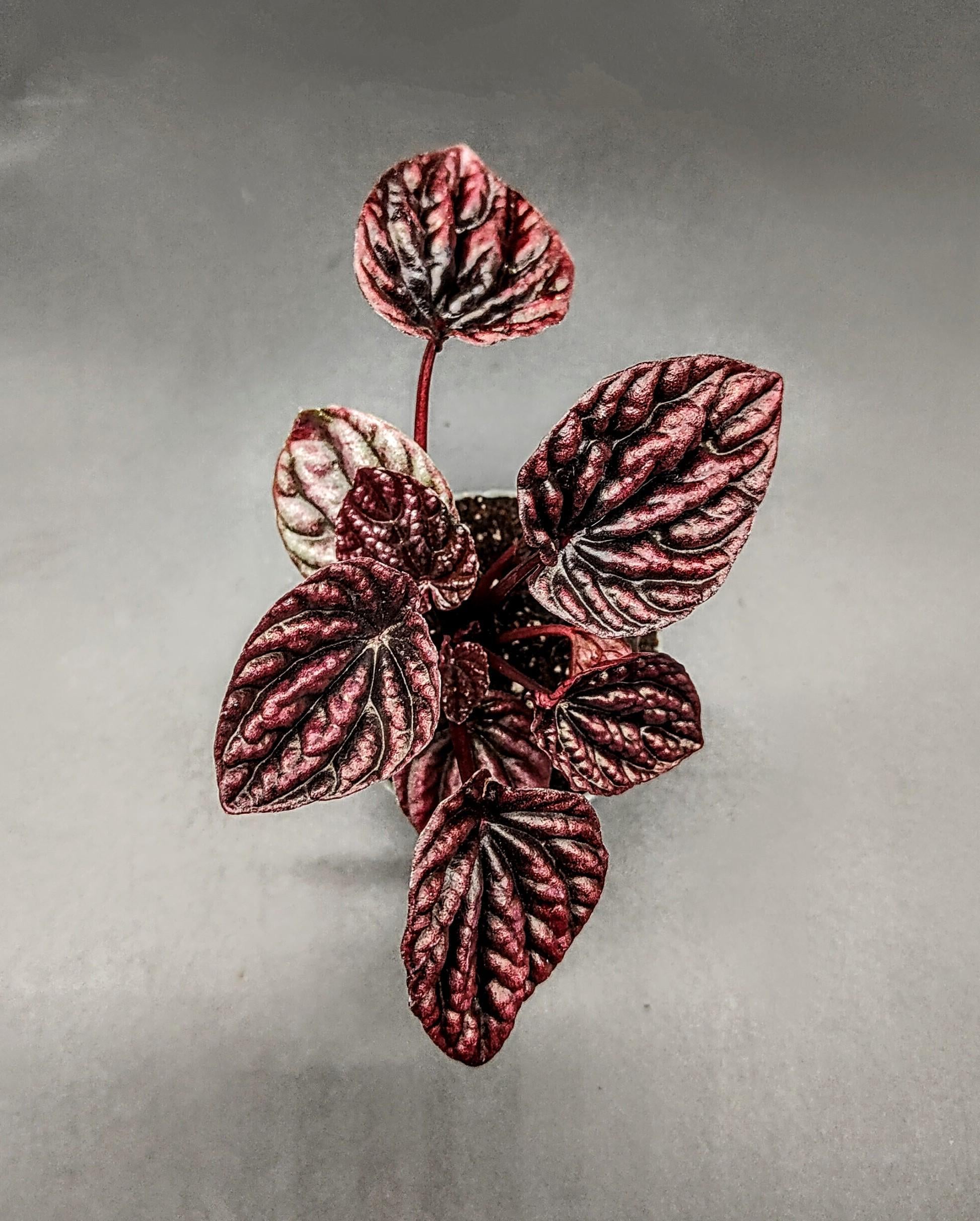 The Peperomia 'Red Luna' is a striking and compact houseplant known for its dramatic foliage and easy-care nature. Its rounded, succulent-like leaves feature a deep, velvety burgundy-red color, complemented by a subtle sheen that adds depth and elegance. The vibrant tones make it a standout addition to any plant collection or indoor decor.This Peperomia thrives in bright, indirect light but can also adapt to lower light conditions, making it versatile for various spaces. It prefers well-draining soil and minimal watering, thanks to its semi-succulent nature. Perfect for tabletops, shelves, or small spaces, the Red Luna is a must-have for plant lovers seeking a low-maintenance yet visually stunning addition to their collection!6cm pot